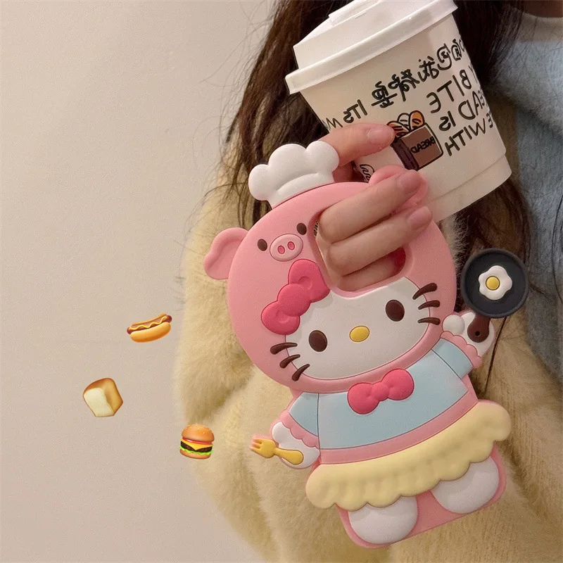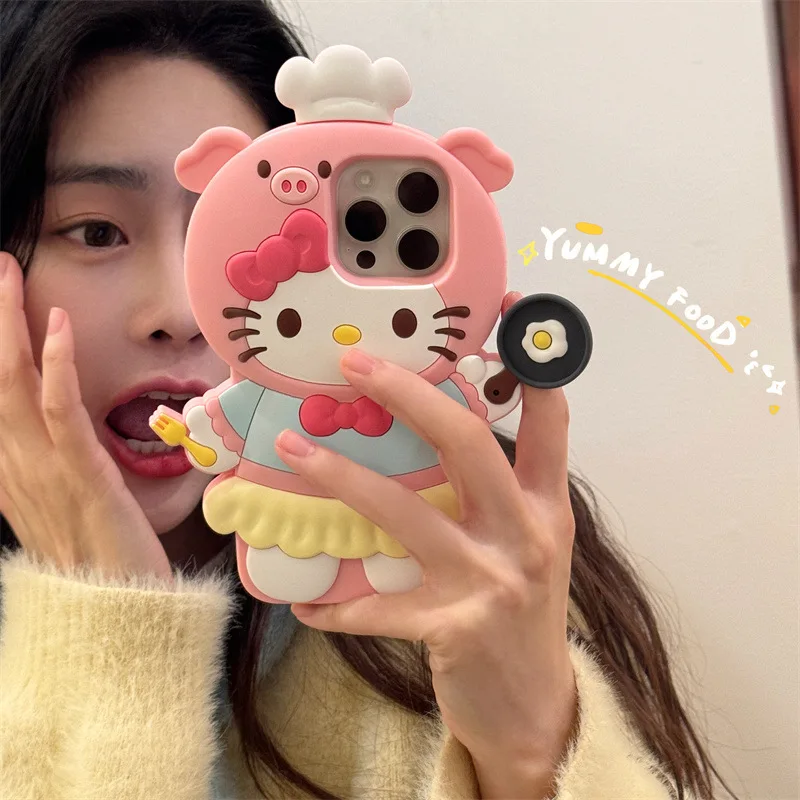 3D Kawaii Cute Cartoon Hello Kitty Chef Phone Case For iPhone 16 15 14 13 12 Pro Max Silicone Soft Shockproof Protective Cover